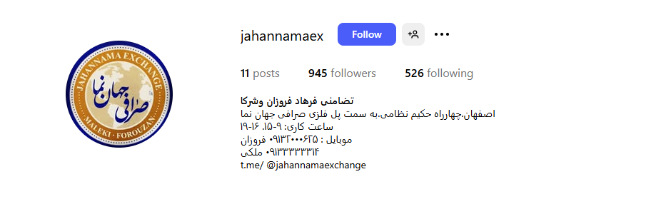 | صرافی جهان نما | اصفهان، چهارراه حکیم نظامی، به سمت پل فلزی | 09132000625 |